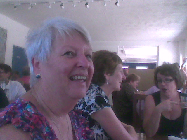 Seventeen of us gathered for lunch and jazz at the Mermaid Cafe on the Deception Bay waterfront. Shockjock wore his Dress Thongs in honour of the occasion, and Secret Agent Culture took some shots with a camera cunningly disguised as a phone. As a camera, it made a good phone: